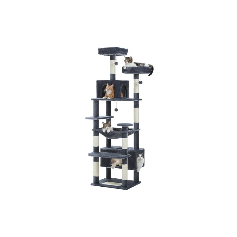 • 72" Tall, Endless Climbing Fun: With the total height of 72" in 8-level structure, the super large cat tree is perfect for 4-5 big cats who love climbing up and down together. The needs of scratching, climbing, sleeping and exercising can also be fully satisfied! Especially the unique rectangle super large cat condo and wide hammock are much larger than normal ones and perfect for cats resting together.