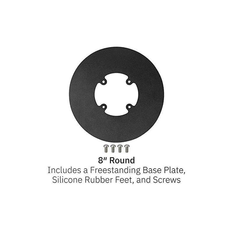• Includes 8" x 8" round countertop plate which increases flexibility and allows the mount to be freestanding. Simply screw the stand to the plate with enclosed screws.