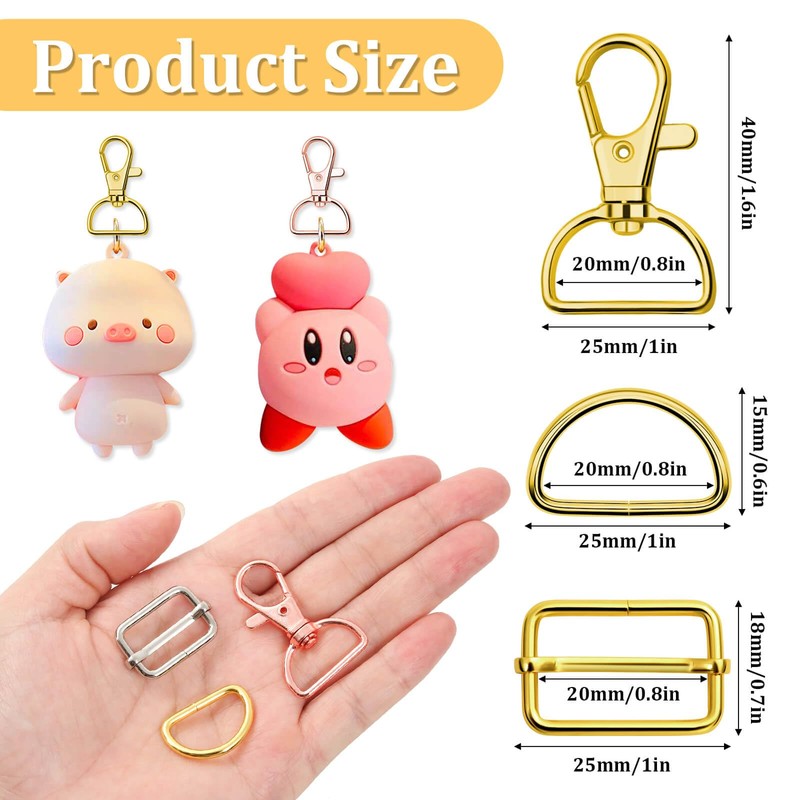 - 👜 CONVENIENT TO USE – The swivel hook keychain clip with a 360-degree capable swivel lobster clasp claw for easy use. The swivel snap hook, strap slides and D rings for purses are a complete set for making purses and handbags. No need to buy the purse strap hardware separately