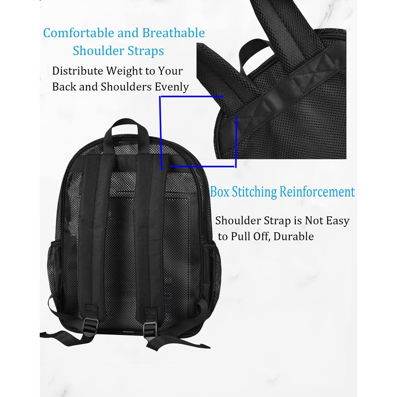 - 【Semi-Transparent Mesh Backpack】- Heavy duty mesh backpack with large size double zipper main compartments, which is enough to hold daily items.