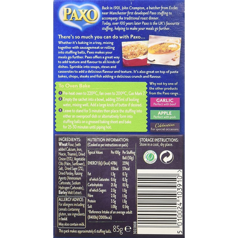 sausagemeat or rolling into stuffing balls, Paxo makes your meals go further.