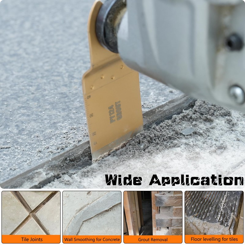 - The oscillating saw blades can be used for bathroom renovation, flooring work, trimming and correcting work, remove grits or grouts, clean up the mortar before fixing, and various household maintenance around the house
