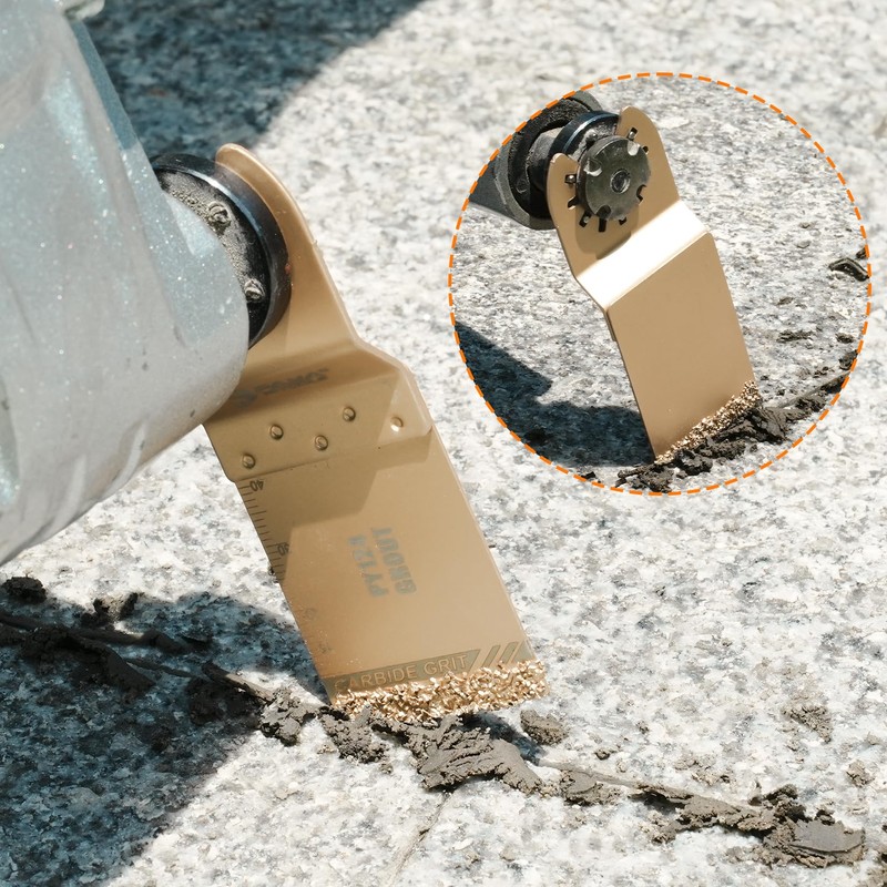 - This oscillating multi tool blade is used to remove defective tile grout, clean up the mortar, plaster, and porous concrete to clean and rework planked deck joints.