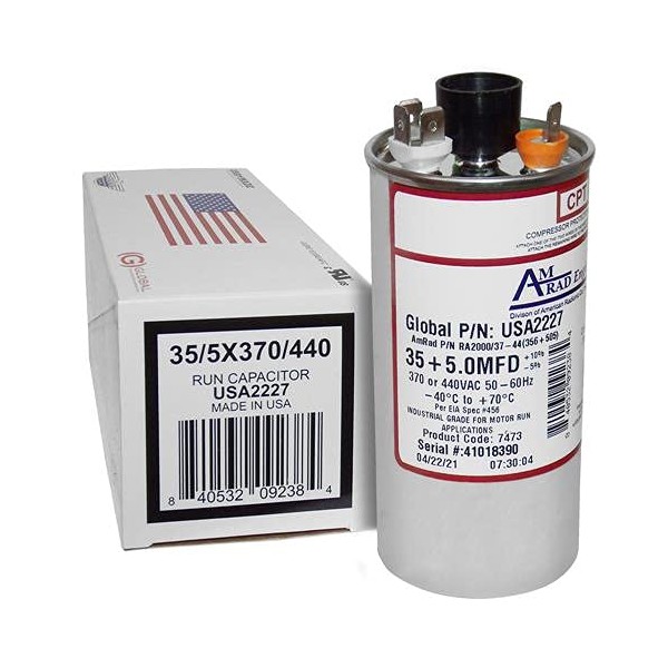 Payne HC98KA036D - 35 + 5 uf/Mfd 370/440 VAC AmRad Replacement Round Dual Universal Capacitor - Made in The U.S.A.