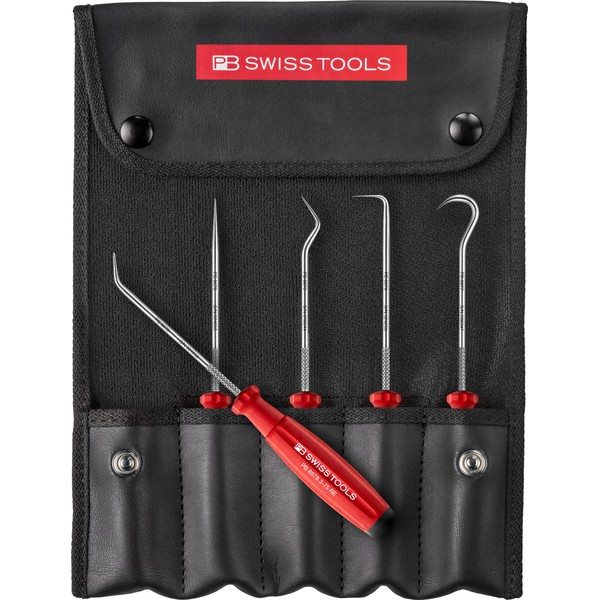 PB Swiss Tools Mini Pick Tool Set PB 8685.Set | 100% Swiss Made | 5-piece SwissGrip Hook Tool for Automotive, O-Ring, Brake, Motor, Gearbox Seal