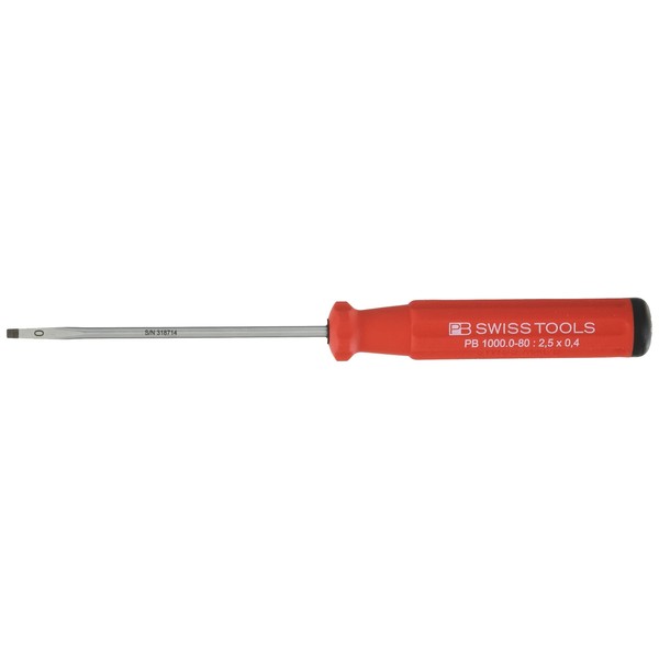 PB SWISS TOOLS Swiss Grip Classic Slotted Screwdriver, Blade Thickness 0.02 x Blade Width 0.1 inches (2.5 mm), Total Length 6.5 inches (165 mm), 1000.0-80