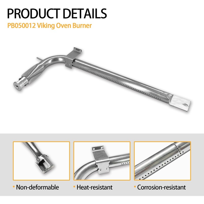 - [ PB050012 ] PB150012 is a burner tube that fits for viking oven burner EVGIC305. The viking replacement parts can be used to replace your broken oven tube.The viking range parts PB050012 is made of stainless steel and it is durable. Dimensions: 17inches * 7 9/16inches