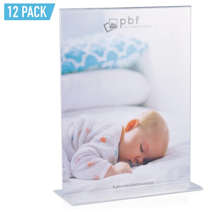 pbf 8.5x11 Acrylic Picture Frame Display Stand | 8.5 x 11 Vertical Clear Acrylic Sign Holder | T-Style Photo Frame for Table Sign, Tabletop Wedding Sign, Menu, QR Code (12-Pack)