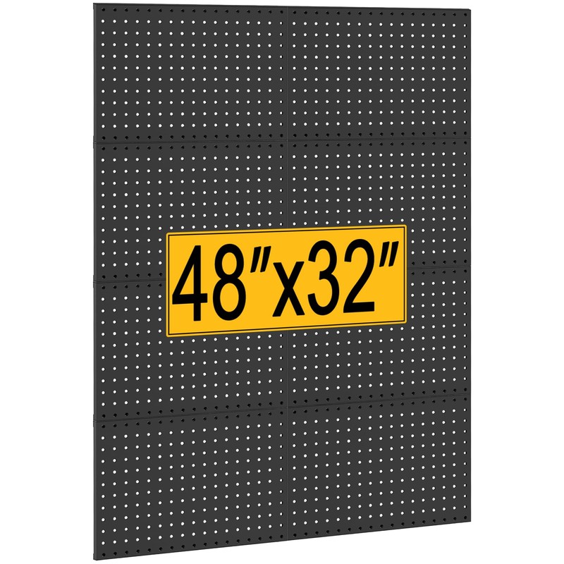 - Metal Pegboard: Our peg board panels are made of high quality steel with a powder coated finish that is strong. The total load capacity of 6 pegboards can reach 600 lbs! With a single pegboard's load capacity of 100lbs, there's no need to worry about shaking and falling anymore