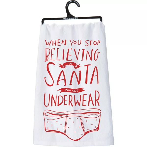 CHRISTMAS TEA TOWEL ~ "When you stop believing in Santa you get underwear"