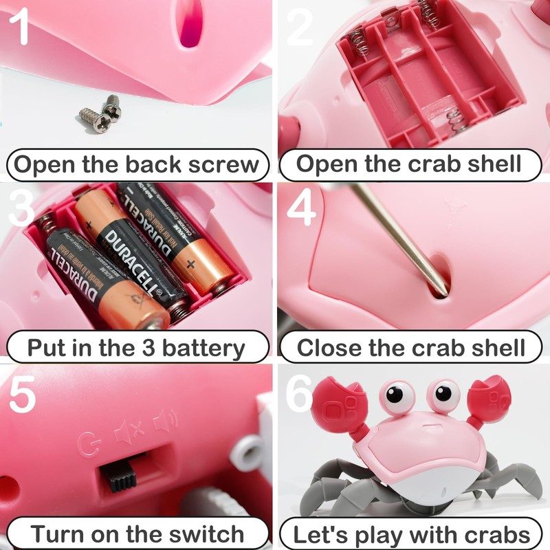 - Assisting Infant Crawling: 6-12 months old toddlers will surely be drawn to the crab's crawling action. The baby will attempt to crawl towards it and catch it, but due to the obstacle avoidance sensor, they can never quite capture it, hugely satisfying the baby's sense of exploration.