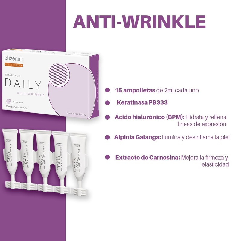 PBSerum Smartker Daily Anti-wrinkle 15 unidades de 2ml c/u - Ayuda a Reducir la Apariencia de las Arrugas