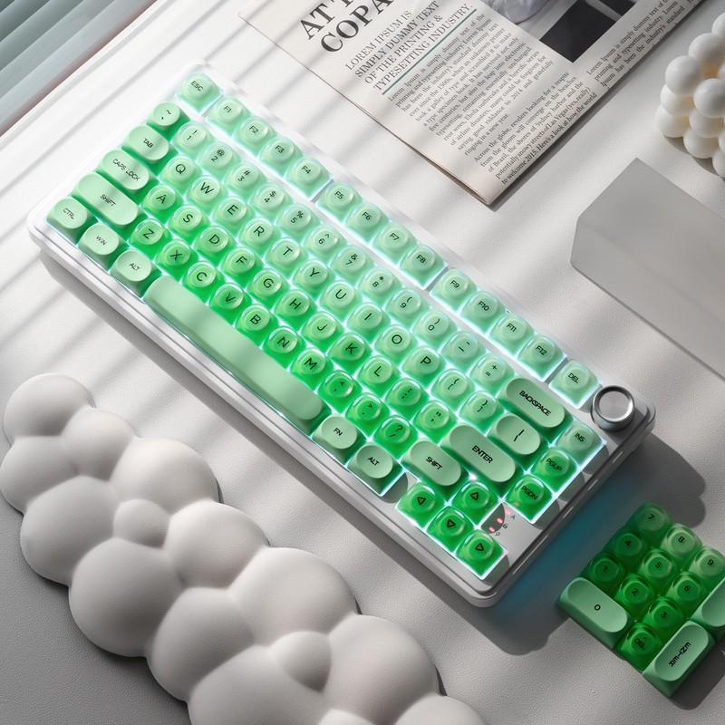 - 🍏【Cute Shine-Through Keycaps】The bright, crisp green hue—reminiscent of ripe green apples—offers a lively aesthetic, adding a fresh, energetic vibe to your keyboard and making it stand out effortlessly.