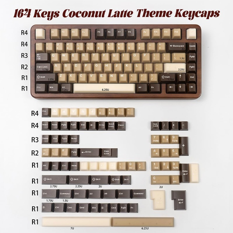 - Coconut Latte Theme Keycaps: Our brown keycaps are inspired by latte, a wonderful and unique sensation when coconut milky and coffee collide. Coffee keycaps bring the cozy world of coffee to your keyboard, creating a relaxed and warm ambiance in your workspace.