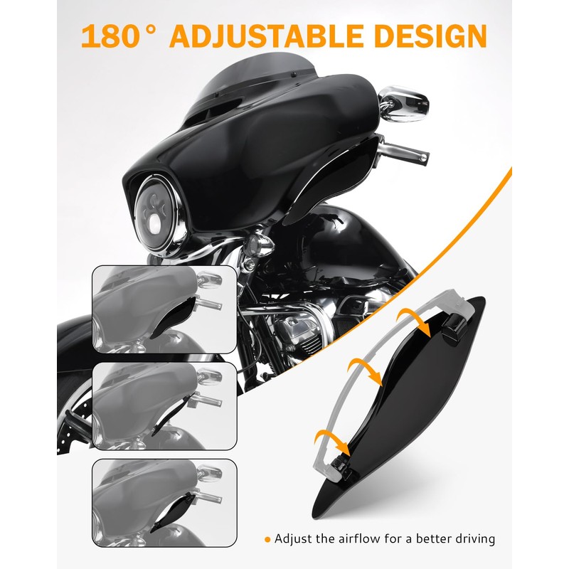 - ▶PERFECT FIT - Aftermarket side wings air deflectors are compatible for Harley Touring 2014-up Electra Glide, Street Glide and Tri Glide models.