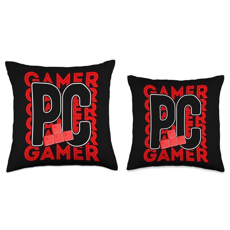PC Gamer Gaming Mouse Design Ideas & Gifts Gamer Computer Gaming with Mouse Videogames PC Throw Pillow, 16x16, Multicolor