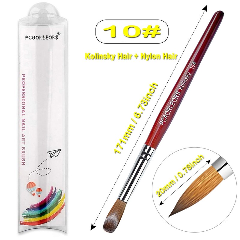 PCAORLEORS kolinsky Acrylic Nails Brush with Pure Mink Nylon Hair and Red Wooden Handle, Round Gel for Applying Acrylic, Size #8, 10, 12 (#10 (Flat/Round))