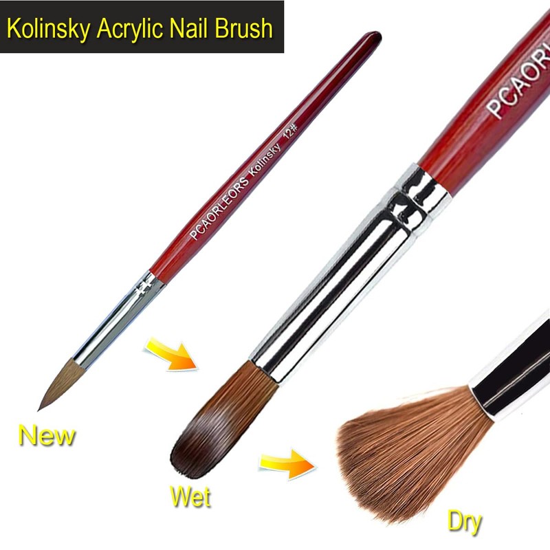 PCAORLEORS kolinsky Acrylic Nails Brush with Pure Mink Nylon Hair and Red Woo...
