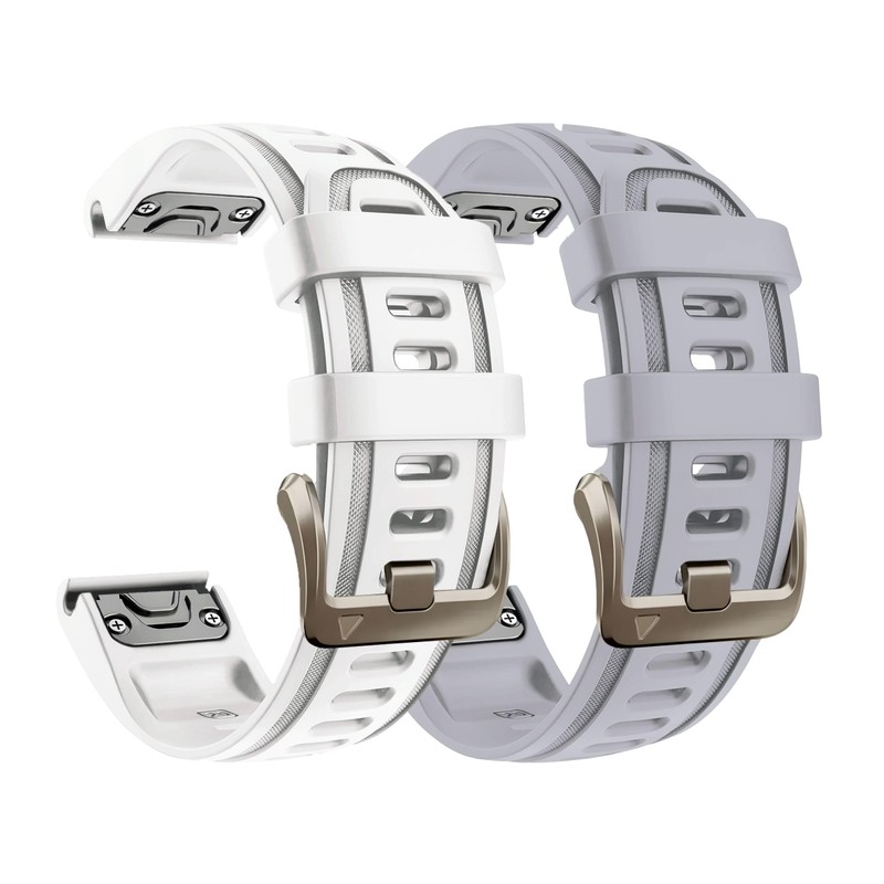 PCAVO 20mm Watch Band for Garmin fenix 5s 6s 7s pro solar Quick Fit 20 silicone bands replacements with light Soft gold buckle for garmin epix pro gen 2 42 Descent Mk2s/3 Short Women White Powder Grey