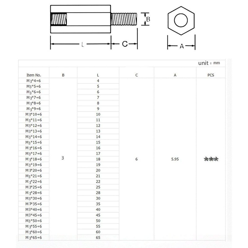 - Product Name : Stand-Off Hex Spacer Thread Size : M3 Male x M3 Female