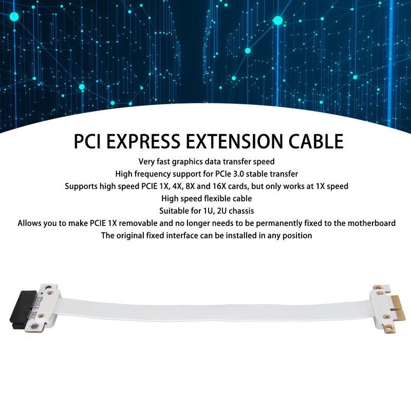 1、FAST TRANSFER SPEED: PCIE extension cable features extremely fast graphics data transfer speeds and high frequency support for PCIe 3.0 stable transfers. Supports high speed PCIE 1X, 4X, 8X and 16X cards, but only works at 1X speed. 2、FLEXIBLE CABLE: Suitable for 1U, 2U chassis. Allows you to make PCIE 1X removable, eliminating the need for permanent fixation to the motherboard. The original fixed interface can be installed in any position. 3、STABLE AND DURABLE: PCI Express 3.0 1X riser cable requires no USB transfer, no BIOS transfer, stable and durable. The core is made of pure copper with tinned process to ensure full signal transmission. 4、PREVENTS INTERFERENCE: PCI express extension cable shield uses TPE plastic sleeve and PE insulation layer to ensure the electromagnetic interference of the signal during transmission. 5、SCOPE OF APPLICATION: PCIE 1X extender adapter jumper is suitable for high end sound cards, professional capture cards, network cards, wireless cards, data cards, graphics cards, adapter cards, etc.