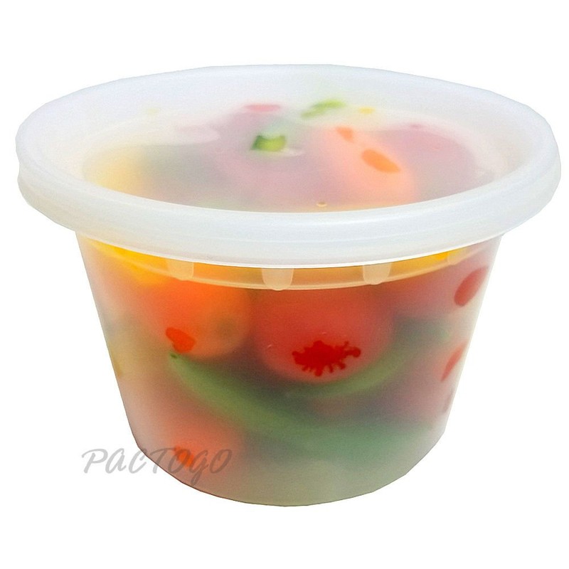 PCM 16 oz. Heavy Duty Round Deli Food Soup Plastic Container w/Lid 100% BPA F...