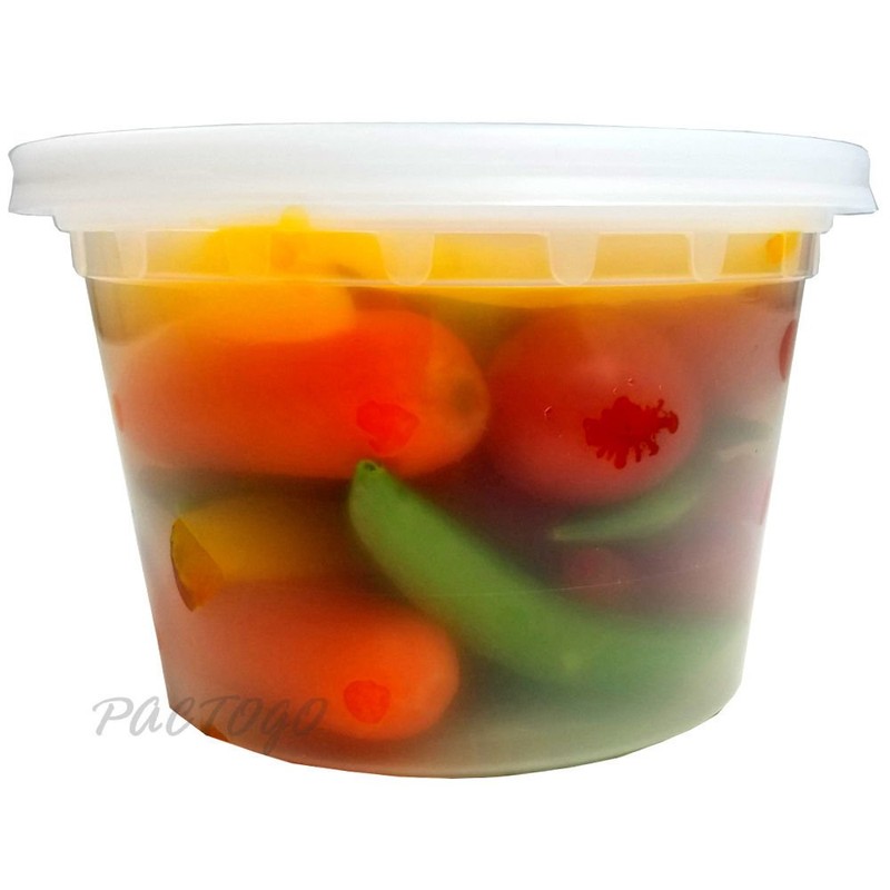 16 OZ HEAVY DUTY MICROWAVABLE DELI CONTAINERS W/LIDS 100% BPA. 16 fl.oz (PINT SIZE) Capacity. Dimensions 4.55" Diameter x 3.1" Vertical Depth, Super Tight Seal, Eliminates Spills & Leaks Perfect for Hot Soups, Cold Liquids, or Solid Food Heavy Duty Microwavable Clear Plastic Containers, Freezer Safe, 100% BPA FREE, Made with Clear/Translucent Polypropylene (PP5) (Lids Made w/Heavy Duty LDPE) Dishwasher Safe, Can Be Washed and Reused Many Times Designed to Withstand the Toughest Kitchen Environments Used by Many High-End Restaurants, Chefs, and Caterers Across America