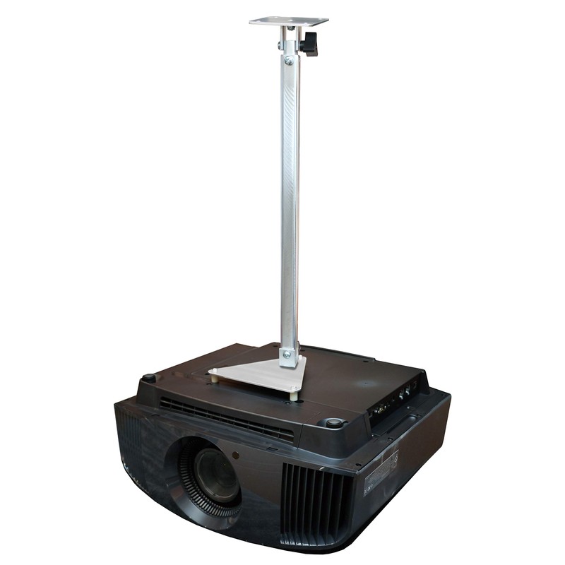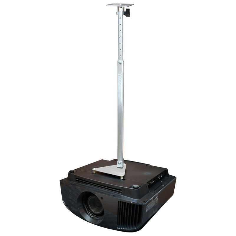 Projector ceiling mounts from Projector Ceiling Mounts Direct (PCMD) LLC. offers the consumer a quality ceiling mount at a fraction of the cost of others on the market. This projector ceiling mount can be rotated 360 degrees, and pitched and rolled in any direction. Max Tilt: +/- 80 degrees. The mounting plate is CNC machined for precise fitment and made from 6061-T6 aircraft grade aluminum. Unlike universal ceiling mounts, our projector ceiling mounts are specifically designed for your projector. This ensures proper hanging of the projector by utilizing minimal projector coverage as well as leaving adequate space for heat to escape. All the necessary hardware is included to install the ceiling mount onto your drywall ceiling or wooden beam and projector. Detailed instructions are also included for a quick and easy installation. This mount style sets the projector approximately 23 - 30 inches from the ceiling depending on the telescoping extension setting.