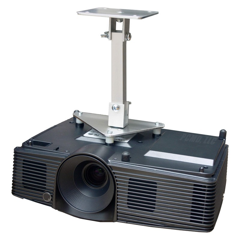 Projector ceiling mounts from Projector Ceiling Mounts Direct (PCMD) LLC. offers the consumer a quality ceiling mount at a fraction of the cost of others on the market. This projector ceiling mount can be rotated 360 degrees, and pitched and rolled in any direction. Max Tilt: +/- 80 degrees. The mounting plate is CNC machined for precise fitment and made from 6061-T6 aircraft grade aluminum. Unlike universal ceiling mounts, our projector ceiling mounts are specifically designed for your projector. This ensures proper hanging of the projector by utilizing minimal projector coverage as well as leaving adequate space for heat to escape. All the necessary hardware is included to install the ceiling mount onto your drywall ceiling or wooden beam and projector. Detailed instructions are also included for a quick and easy installation. This mount style sets the projector approximately 10 inches from the ceiling.