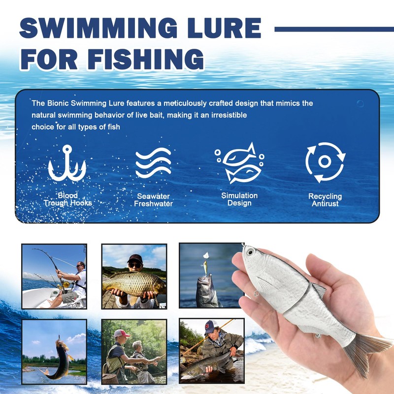 - Strong Fish Attraction: The lifelike appearance and swimming action trigger instinctive strikes from bass, pike, and more—even in low-visibility or murky water conditions