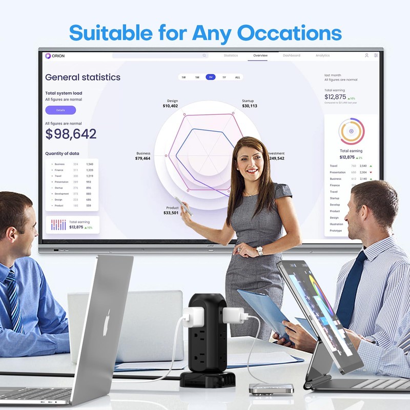 - 【What You will Get】 Power strip with USB ports, Maunal, our worry-free 12-month, our life time technology support and friendly customer service.The steady base with anti-slip mat on the bottom effectively avoid wobbling and slipping around.