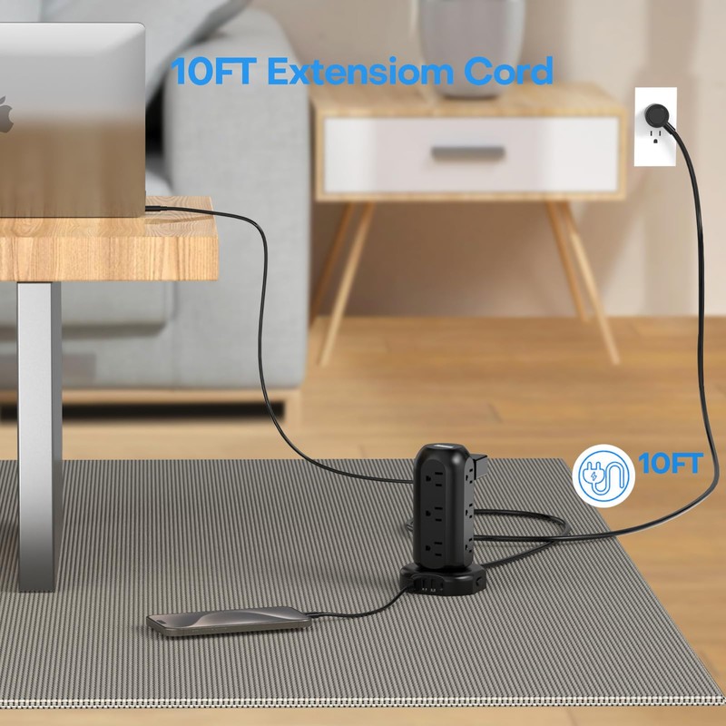 - 【16 in 1 Power Strip Surge Protector】: Flat plug extension cord could turn 1 sockets into 12 outlets 4 USB, which could charge up to 16 devices at the same time. Mini power strip tower must-have accessories for the college dorm room, home, office supplies and etc. And save your space and make your desktop organized.