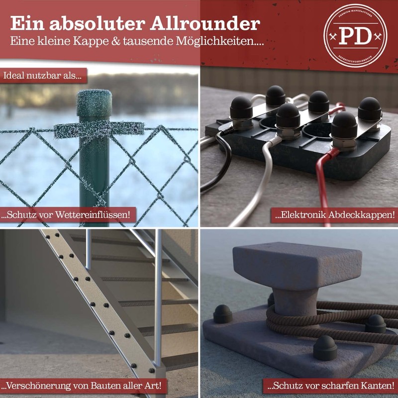 - ✔ All-round – a small cap and so many possibilities! The plastic cover caps ensure absolute reliability indoors and outdoors. Use the protective caps e.g. for furniture and shop construction or simply for everyday repairs