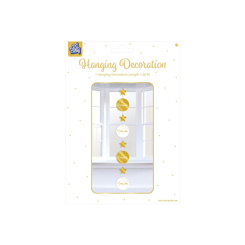 PD-Party 7023213 Plastic Hanging Party Decoration - Congrats, Gold/White, 14 cm Length x 14 cm Width x 120 cm Height