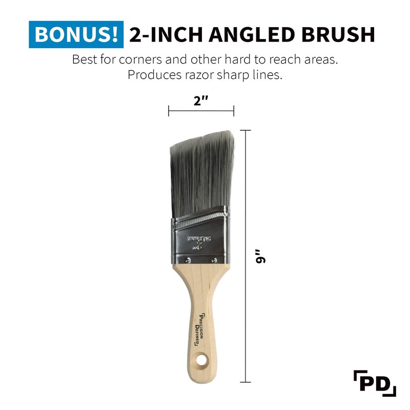 - ✔ BONUS ANGLED HEAD BRUSH: Included with every 5-piece standard paint brush set is a BONUS 2” Angled Head Brush, for a total of 6 Brushes!. Perfect for precise edging! Best used for water-based gloss and emulsion paints.