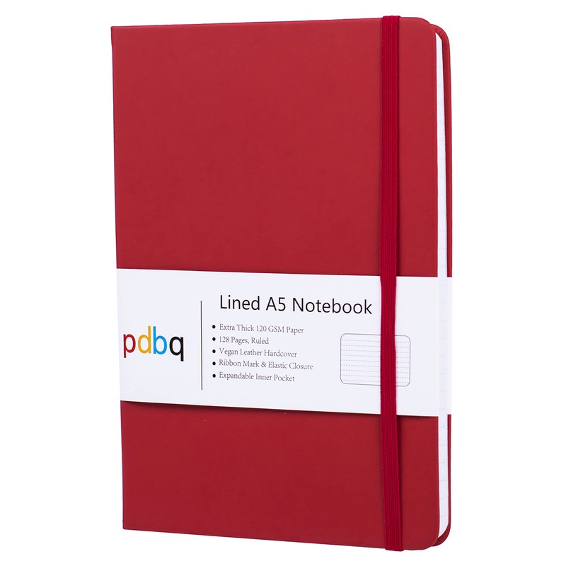 pdbq A5 Notebook Hardback Journal Lined Notebook A5 Inner Pocket Vegan Leather 128 Pages 120gsm Premium Paper with Gift box Bookmark Elastic Closure Ruled Notepad Red