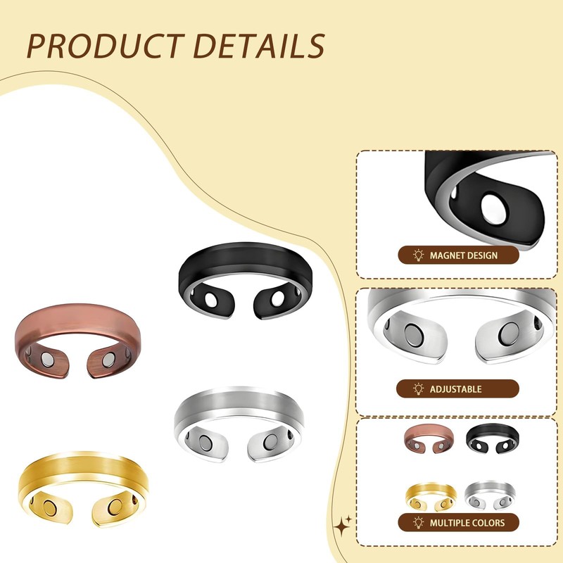 - 【Product Content】You will receive 4 pcs magnetic ring women, The colors are white, yellow, black, and copper, Size: Inner diameter approximately 1.7cm, width 0.5cm.