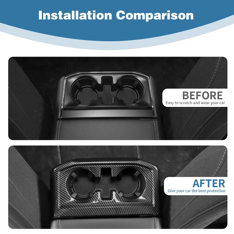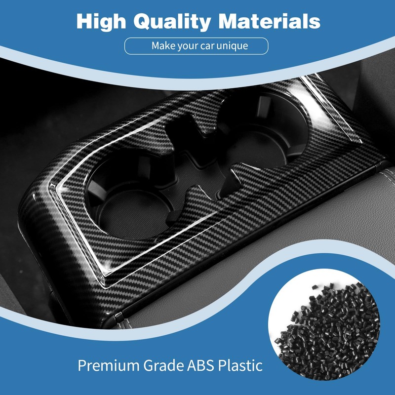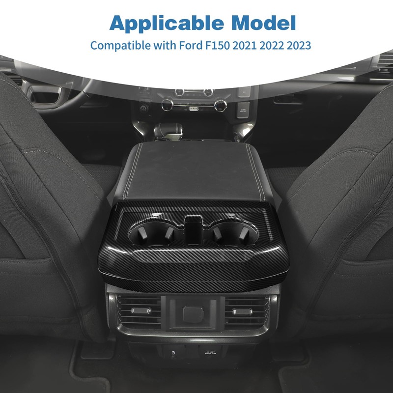 PDKLIN for F150 Center Console Rear Cup Holder Trim Cover Carbon Fiber for Ford F150 2021 2022 2023 Carbon Fiber Interior Accessories 2pcs