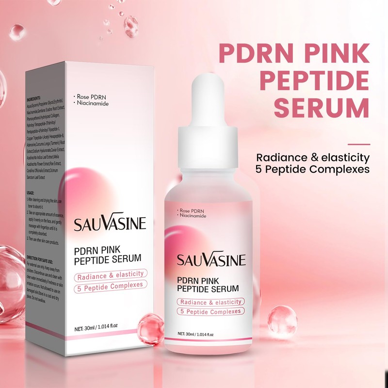 - PDRN & Peptide Powerhouse:The PDRN pink peptide serum infused with Rose PDRN and 5 Peptide complexes,stimulates cell regeneration and collagen production,effectively reducing fine lines and wrinkles, and promoting firm, youthful - looking skin.PDRN is known for its ability to repair damaged skin cells, while peptides are key players in maintaining skin elasticity. Together, they work synergistically to rejuvenate your skin.
