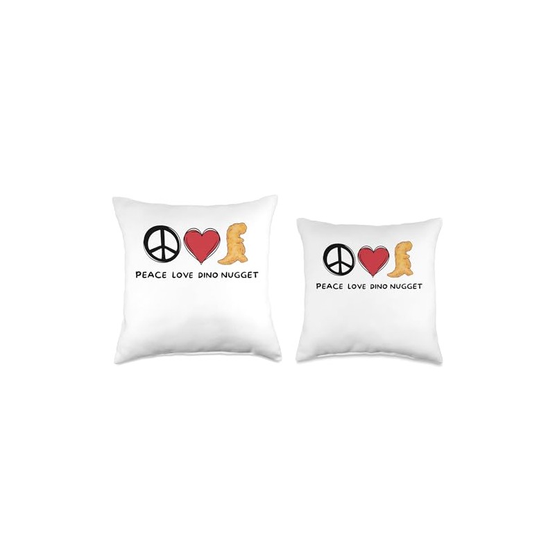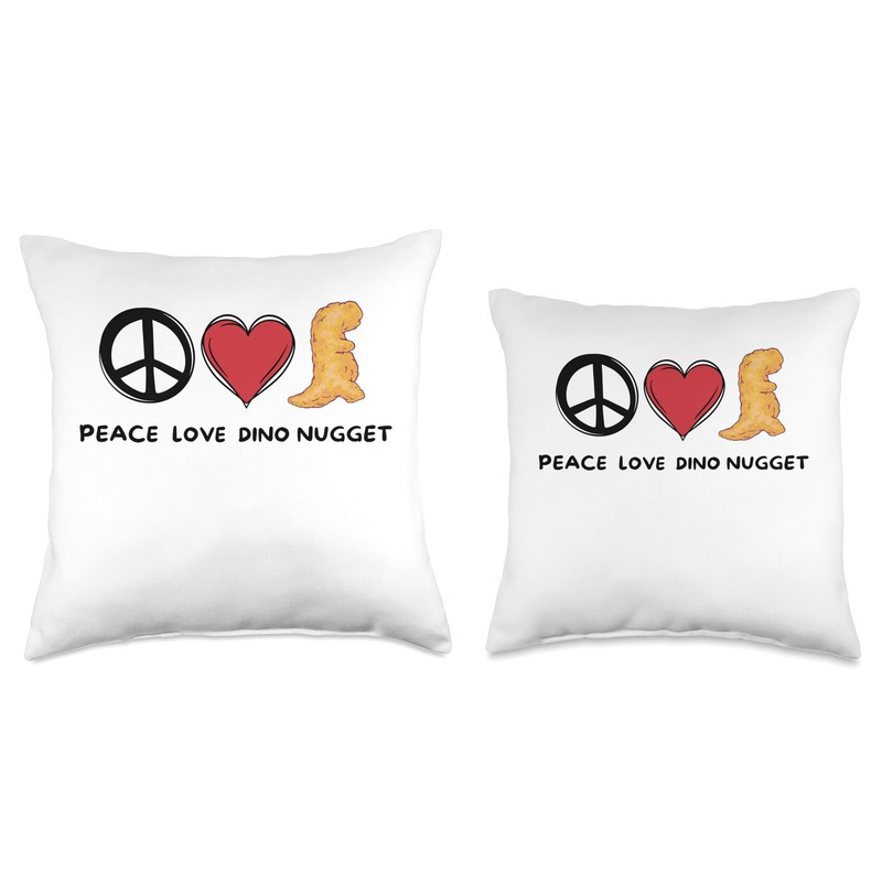 Peace, Love And Dino Nugget Retro Dino Nugget Peace, Love Retro Cute Dino Nugget Food Lover Throw Pillow, 16x16, Multicolor