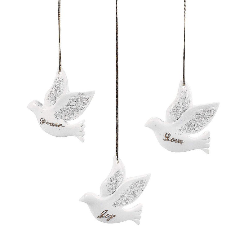 Peace, Love and Joy Dove Ornaments - Set of 12 - Christmas Tree and Home Decor