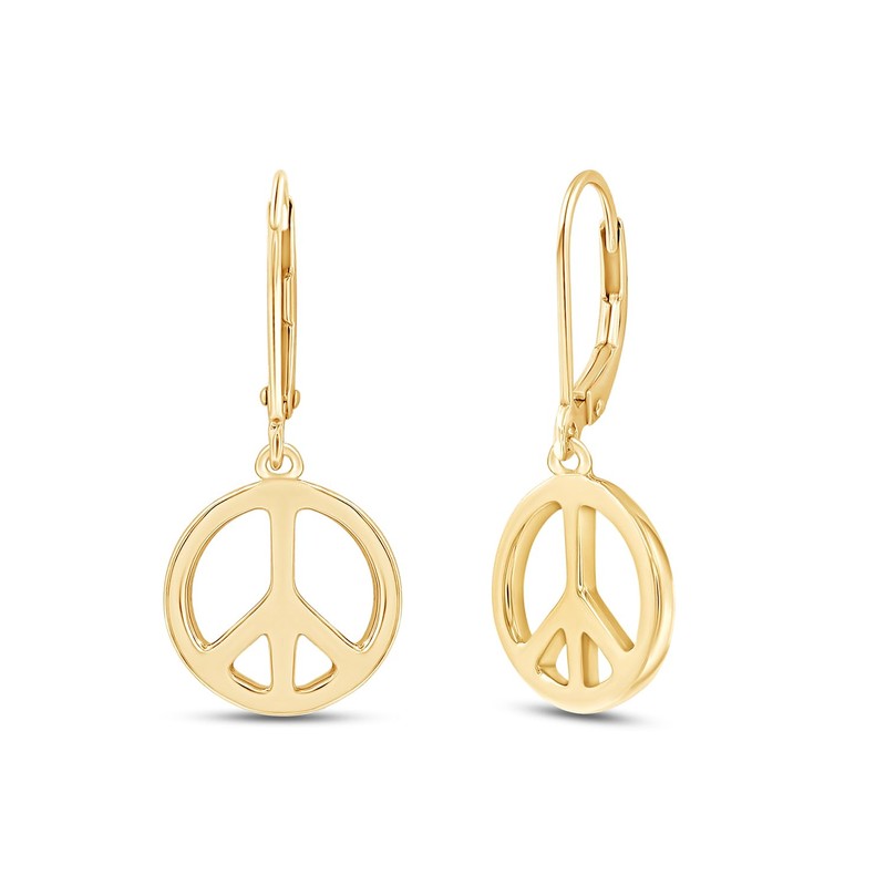 Peace Sign Lever Back Dangle Earrings Jewelry For Women In 14k Yellow Gold Over Sterling Silver