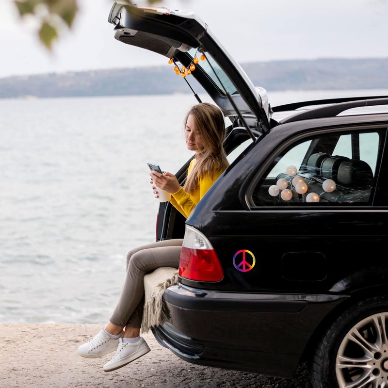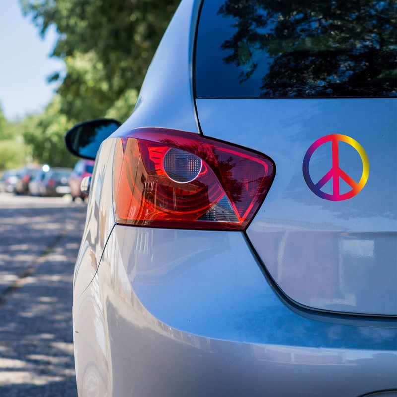 - Decorate your vehicle, bicycle, notebook or similar with the hippie sticker