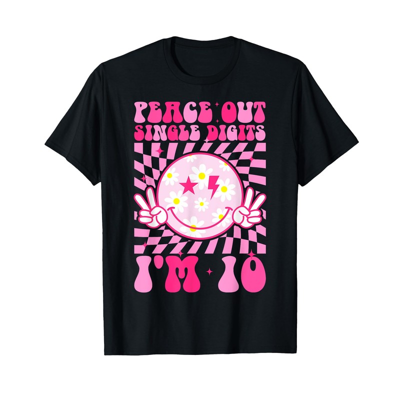 - Peace single digits i'm 10 checkered with smile face and flowers design - funny birthday gifts for 10 year old girls. makes the perfect 10th bday gift idea for kids. ten year old girl birthday gifts. age 10 girls clothes.