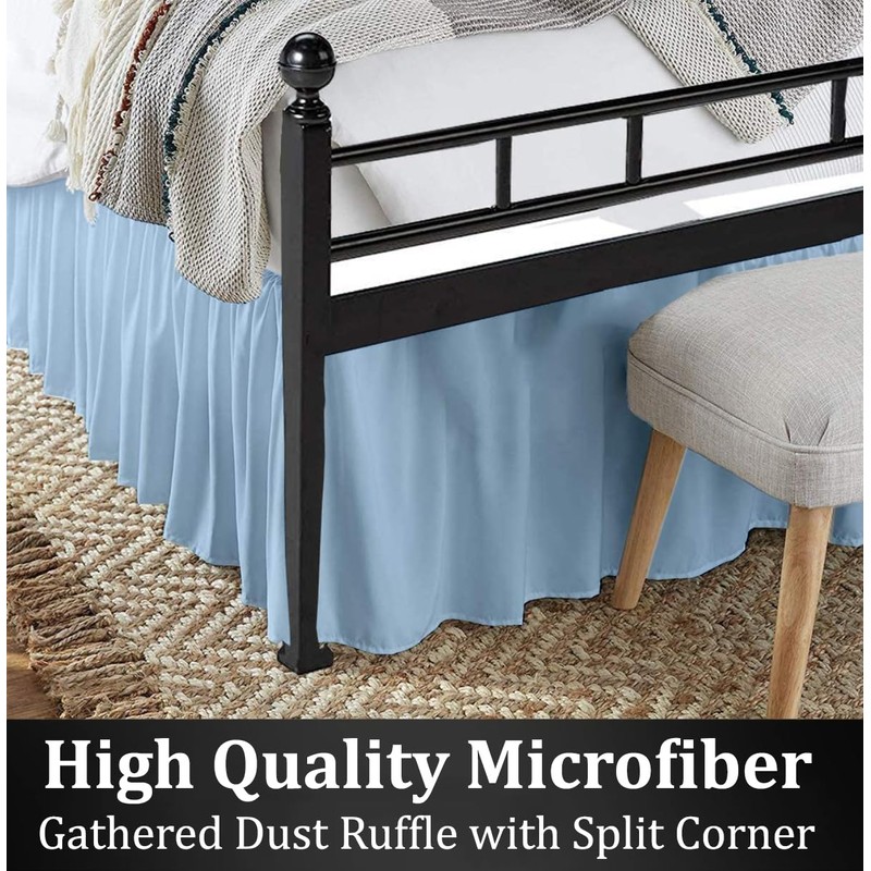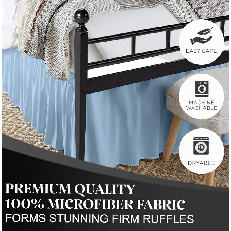 - LUXURIOUS MICROFIBER FABRIC: Ruffled bed skirt is made from 100% fine microfiber fabric softly shirred for a romantic yet tailored look. The fabric is dust and stain resistant, wrinkle-free, and extremely soft and smooth.