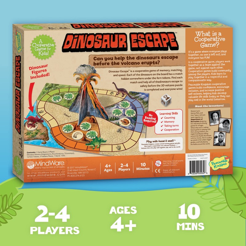 - HOW TO PLAY: Work together to move the dinosaurs around the board. Uncover matching dinosaurs under fern tokens to rescue dinosaurs. Get the dinos to safety before the volcano erupts and everyone wins.