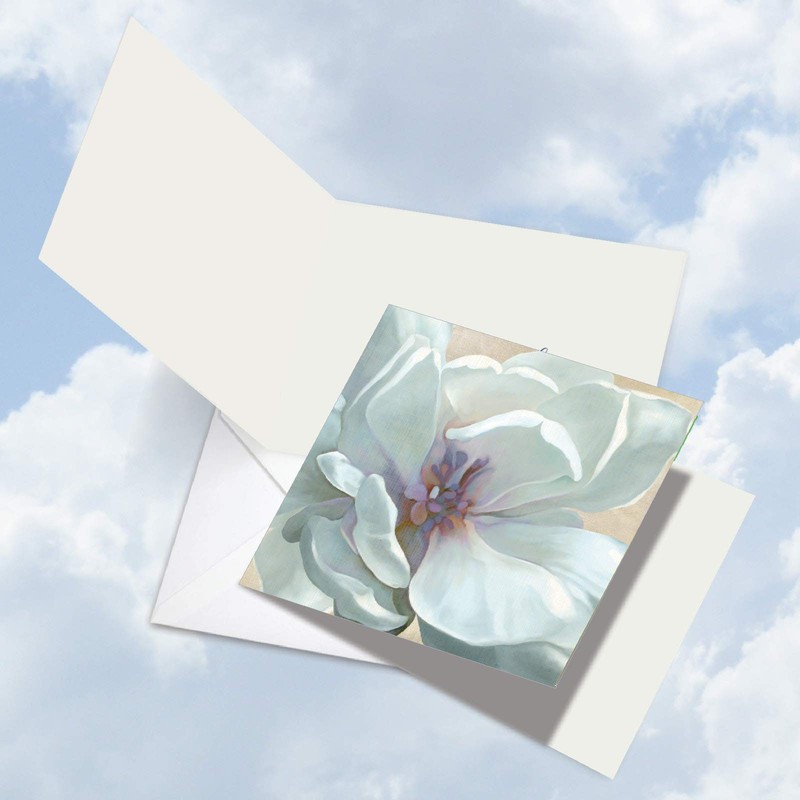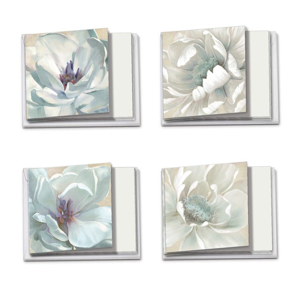 Peaceful Petals: 12 Assorted 'Square-Top' Sympathy Note Cards Featuring a Canvas-Like Painted Image of Crisp White Floral Blooms with Envelopes. MQ4611SMG-B3x4