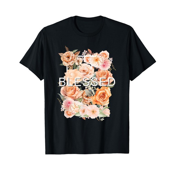 Peach Blessed Blooming Peach Flowers Graphic T-Shirt