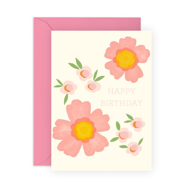 Peach Colour Birthday Card Flower - 'HBD Peach Pastel Floral' - Gifts for Her, Women, Colleagues, Coworker, Sister - Beautiful - Comes with Fun Stickers