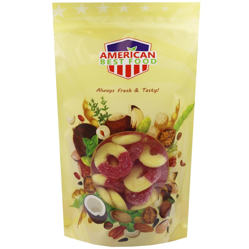 - Premium Peach Flavored Gummy Rings: Delicious round gummy rings in a peach flavor